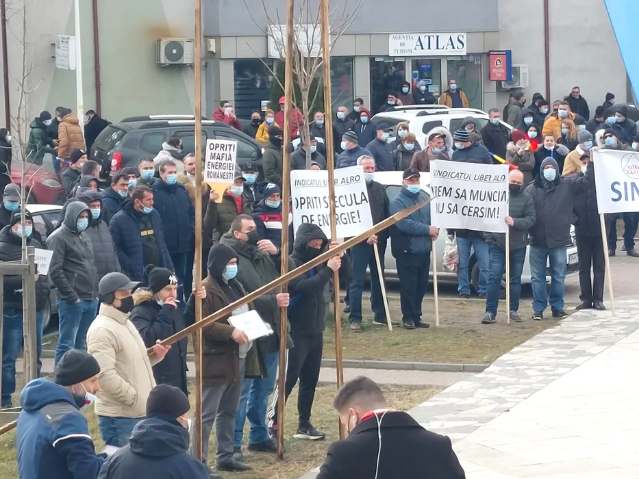 „Țepe” pentru ministrul Energiei. Sute de angajați de la ALRO Slatina au protestat în fața prefecturii Olt, de teamă că își vor pierde slujbele