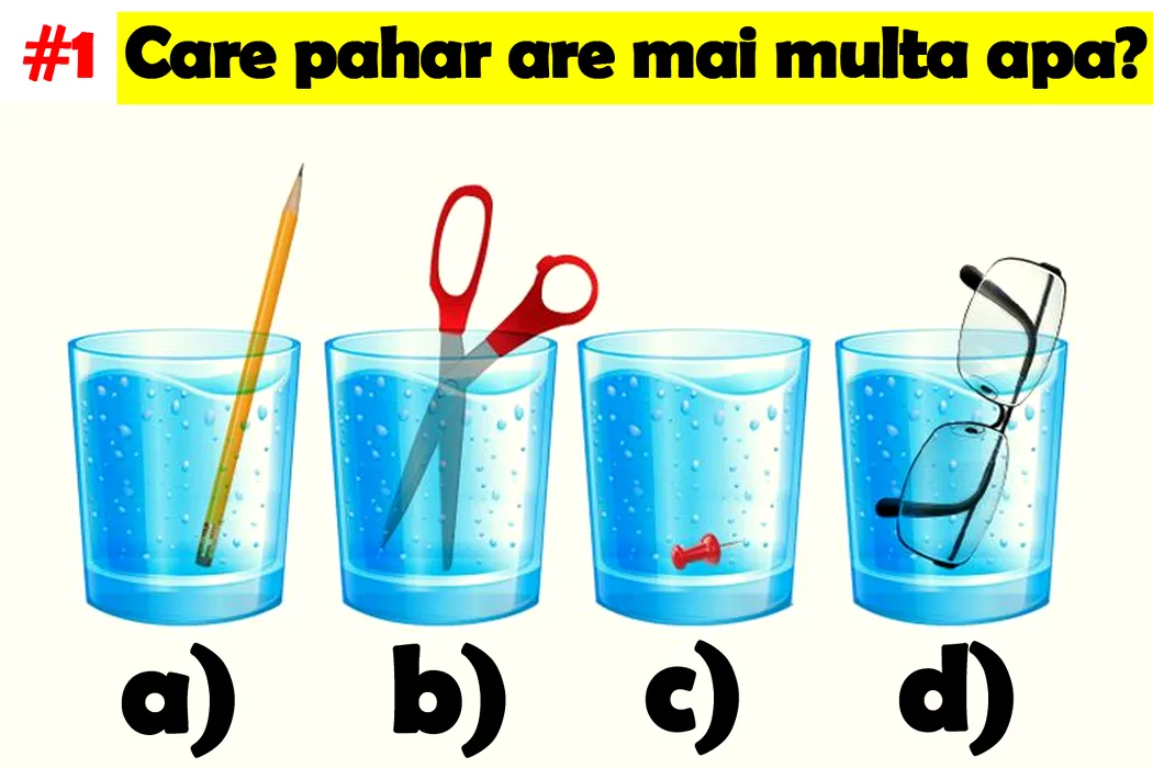 Test de inteligență cu 10 întrebări dificile | Prima: Care pahar are mai multă apă?