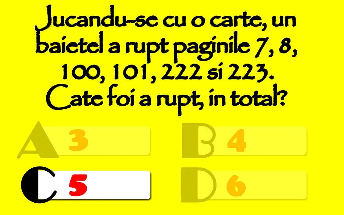 Test de inteligență cu 10 întrebări | Prima: Un băiețel a rupt paginile 7, 8, 100, 101, 222 și 223 dintr-o carte. Câte foi a rupt, în total?