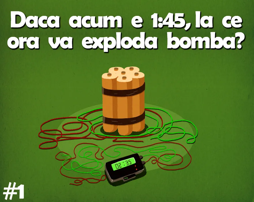 Test de logică viral, cu 10 quiz-uri | Primul: Dacă acum e 1:45, la ce oră va exploda bomba din imagine?