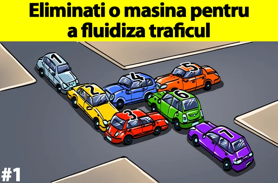 Test IQ cu 10 întrebări | Prima: Care mașină dintre cele 7 trebuie eliminată pentru a fluidiza traficul?
