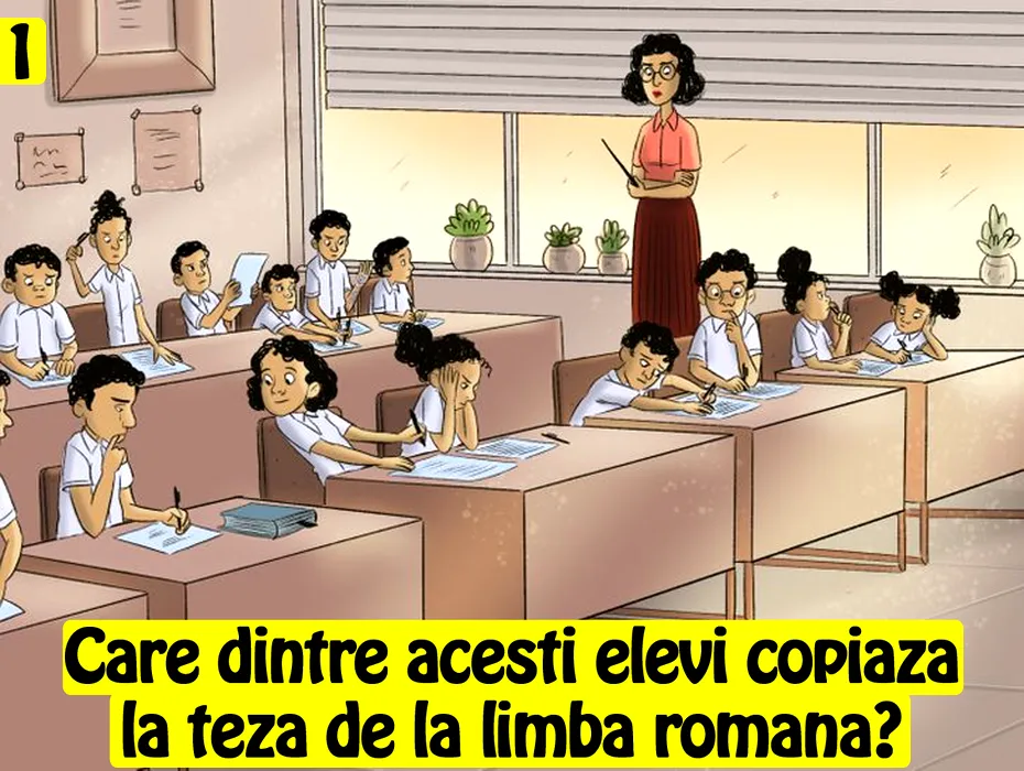 Test IQ cu 10 quiz-uri | Primul: Care dintre acești elevi copiază la teza de la limba română?