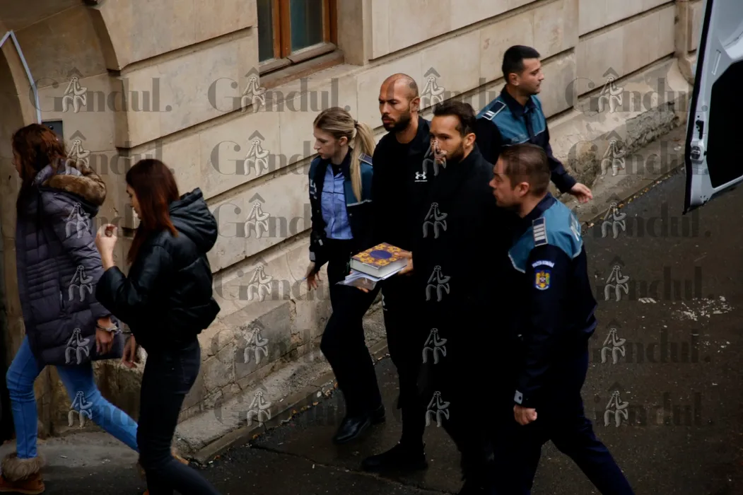 EXCLUSIVE PHOTO | The first images of the Tate brothers before entering the courtroom at the Bucharest Court of Appeal. The book Andrew Tate was holding when he came out of the police van