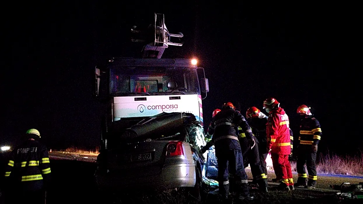 Timiș: Doi morți, după impactul frontal între o mașină și un camion