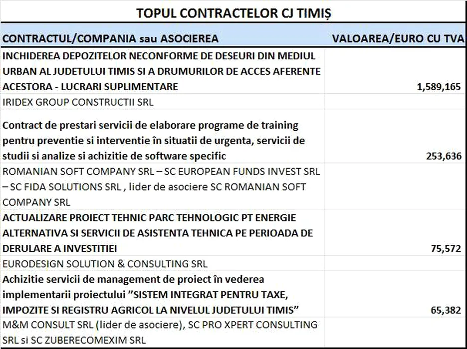 TIMIȘ. Unde au mers banii publici în 2014. Topul firmelor care au contracte locale cu statul