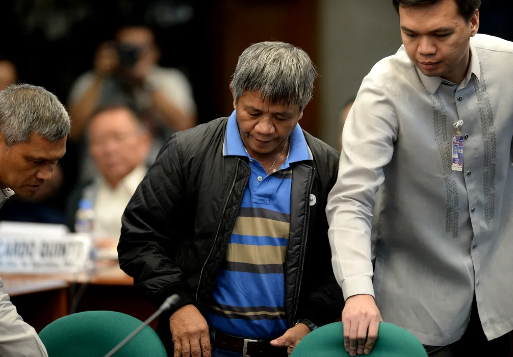 Fostul membru al Brigăzii Morții Edgar Matobato depune mărturie în timpul unei audieri în Senat la Manila, pe 15 septembrie 2016.
