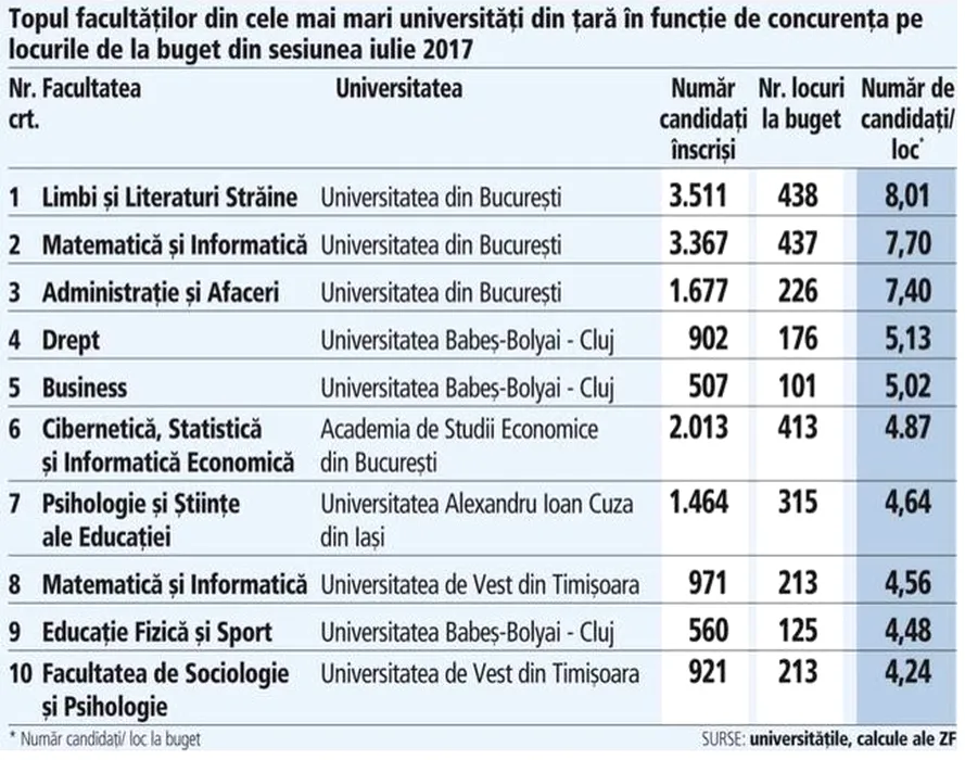 TOP 10 cele mai căutate facultăți din România