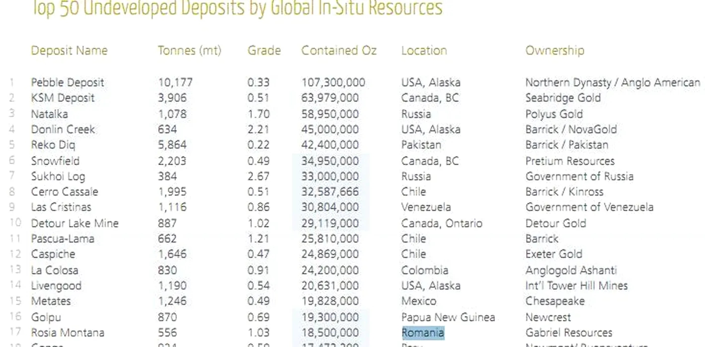 Top 50 al celor mai mari mine și zăcăminte de aur din lume. Pe ce loc se află aurul României. Estimările rezervelor de la Roșia Montană, Bucium și Certej