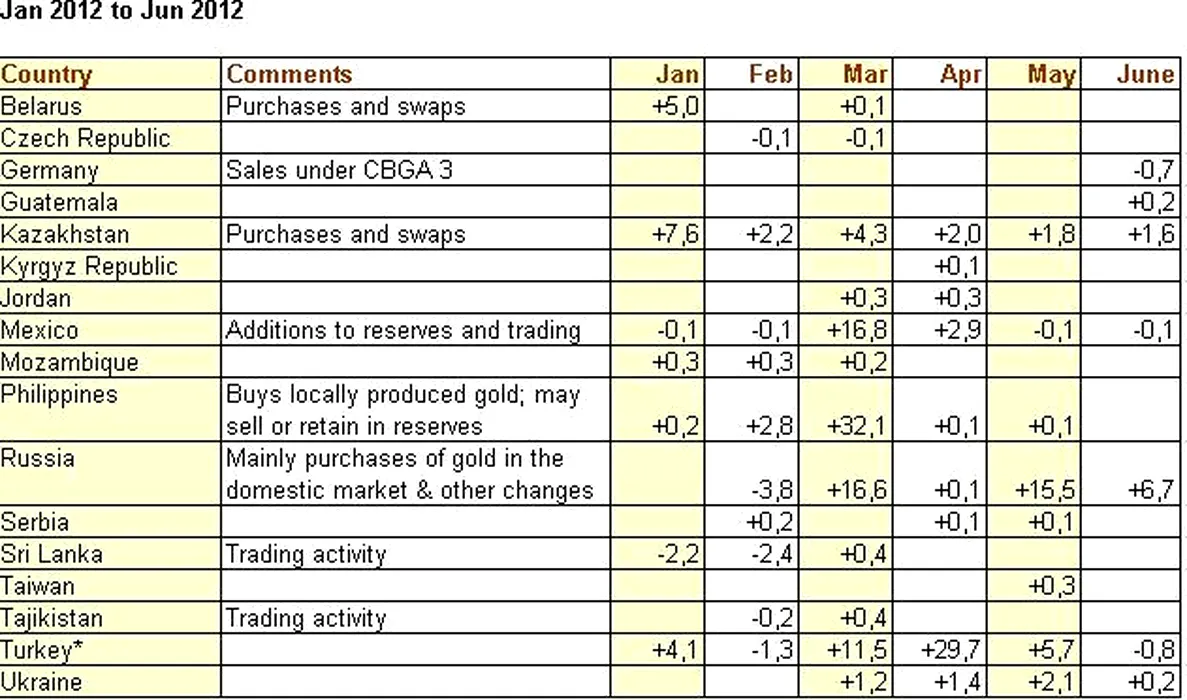 Topul băncilor centrale care au realizat cele mai mari tranzacții cu aur în 2012. Care a fost politica BNR în ultimii 10 ani