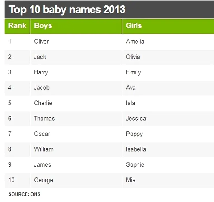 GALERIE FOTO: Topul celor mai populare nume din Regatul Unit. Pe ce loc se află George, nume pe care îl poartă și micul prinț