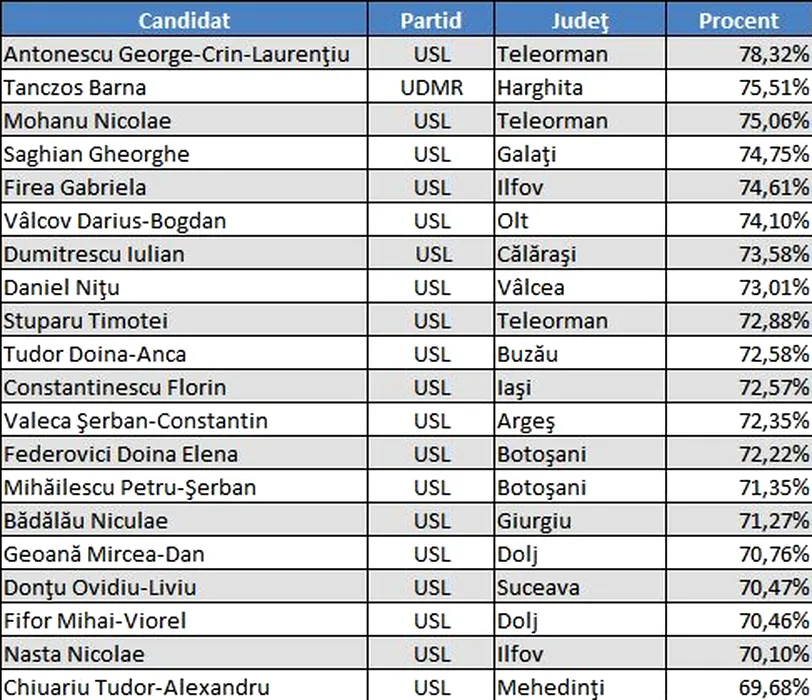 GALERIE FOTO: Topul senatorilor care au câștigat peste 50% dintre voturi în colegiile în care au candidat