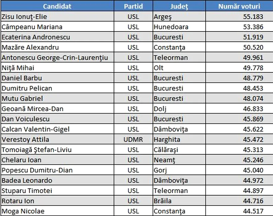 Topul senatorilor care au obținut cele mai multe voturi în colegiile în care au candidat