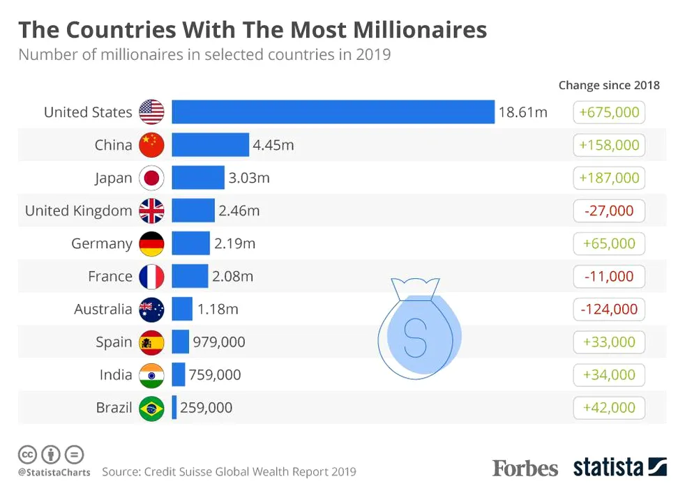 Topul țărilor cu cei mai mulți milionari în dolari | INFOGRAFIC