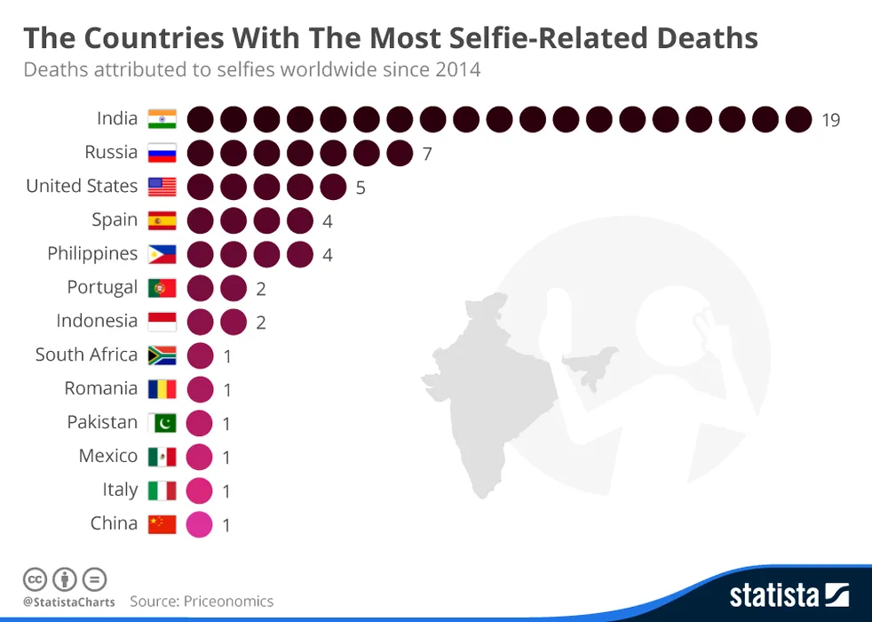 Topul țărilor cu cele mai multe decese cauzate de selfie-uri