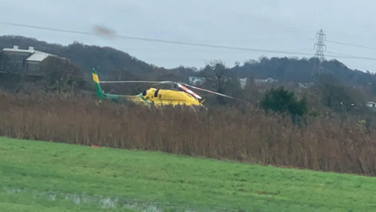 Elicopterul adus de echipele de salvare, pentru găsirea victimelor exploziei