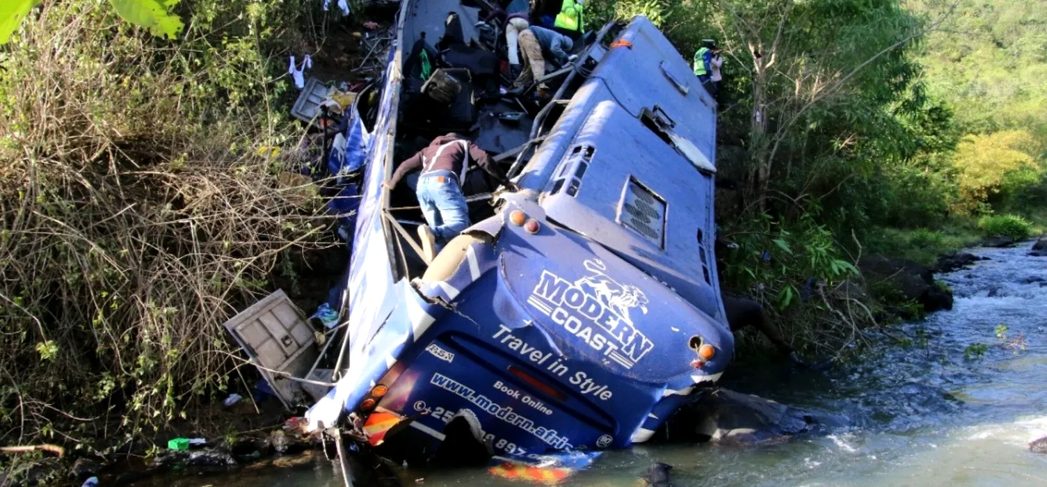 GALERIE FOTO: Tragedie petrecută în Kenya: 33 de morți după ce un autobuz s-a prăbușit de pe un pod, de la zeci de metri înălțime, în valea unui râu