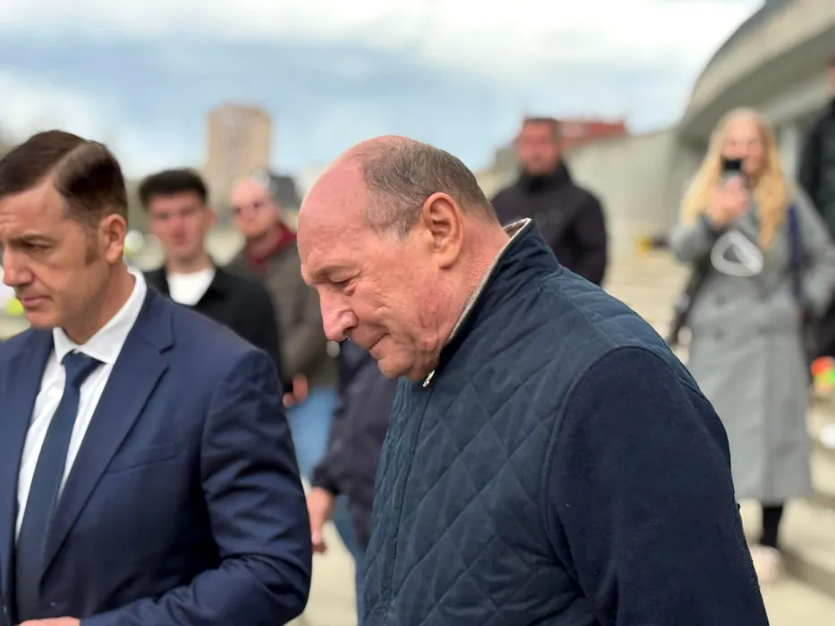 Traian Băsescu l-a omagiat pe Mircea Lucescu. La plecare, fostul președinte s-a oprit la o sesiune de poze cu fanii