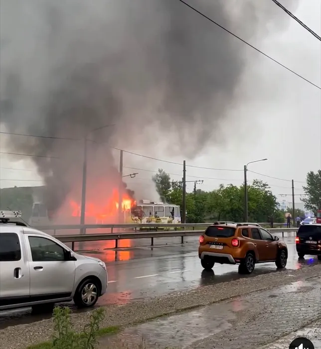 Tramvai cuprins de flăcări, în Craiova. Vatmanul, în exclusivitate pentru GÂNDUL.RO: „Am auzit o bubuitură de la un fulger” (VIDEO)