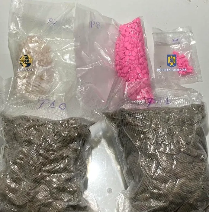 FOTO | Trei bărbați, prinși în flagrant când vindeau droguri într-o parcare din Arad. Ce au găsit polițiștii în casele lor, la percheziții