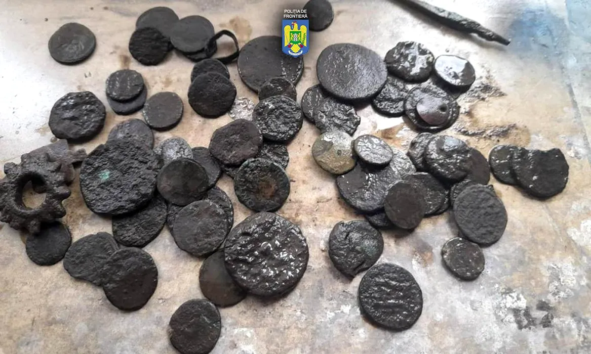 Trei căutători de comori din Bulgaria au încercat să fugă din România cu peste 60 de monede extrem de valoroase