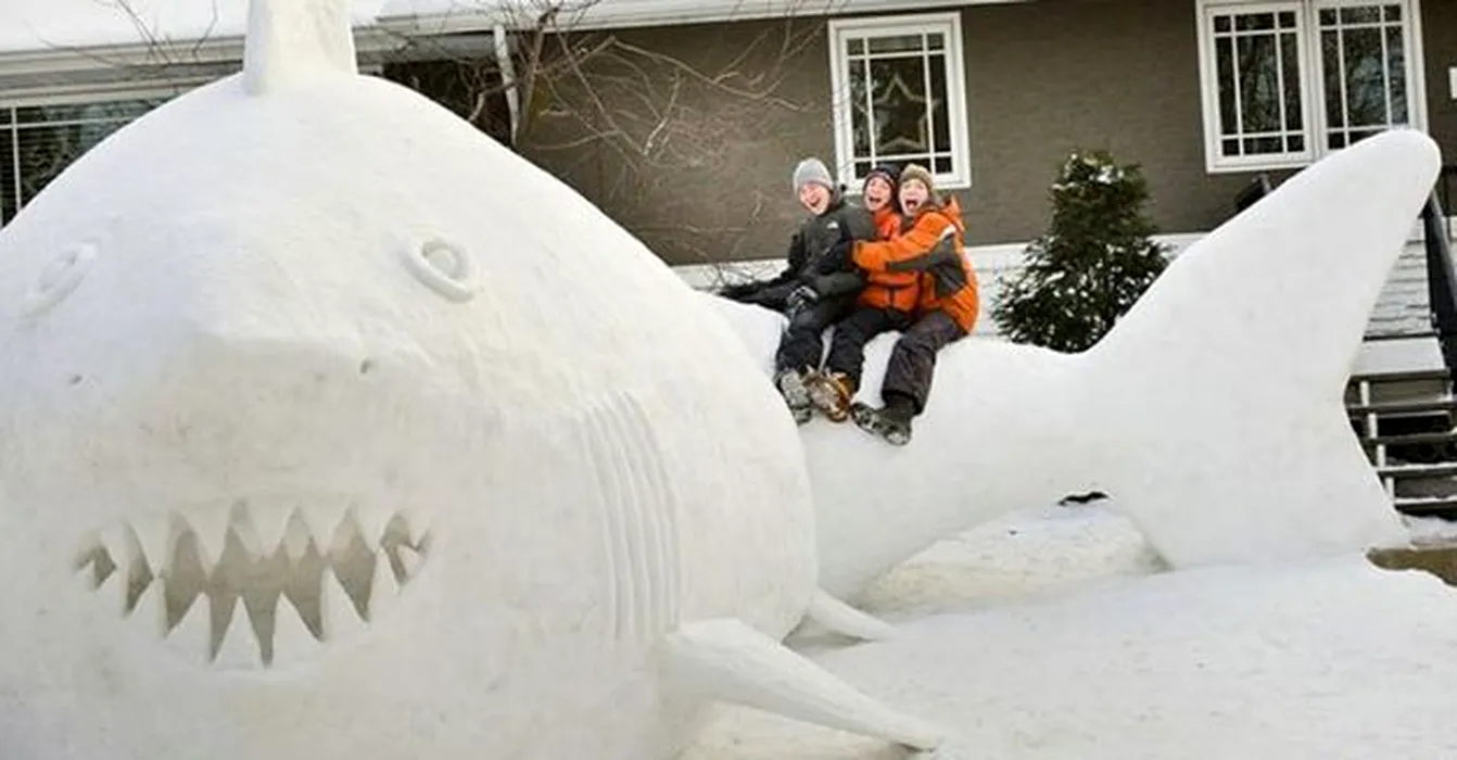 Trei frați au înlocuit tradiționalul omul de zăpadă cu o serie de sculpturi inedite. FOTO