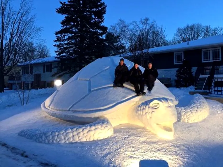 Trei frați au înlocuit tradiționalul omul de zăpadă cu o serie de sculpturi inedite. FOTO