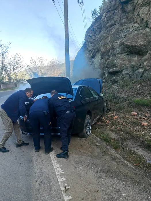 O altfel de MISIUNE: Daniela, Dumitru și Laurențiu, trei polițiști de frontieră au intervenit pentru stingerea unui incendiu izbucnit la o mașină