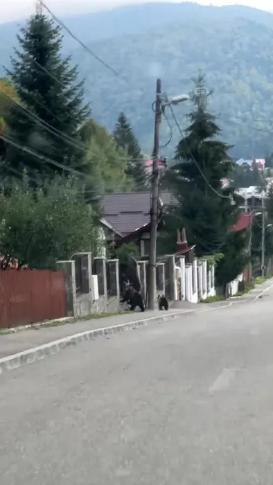 VIDEO / 3 urși au fost filmați în timp ce se săreau gardul unei case din Bușteni.