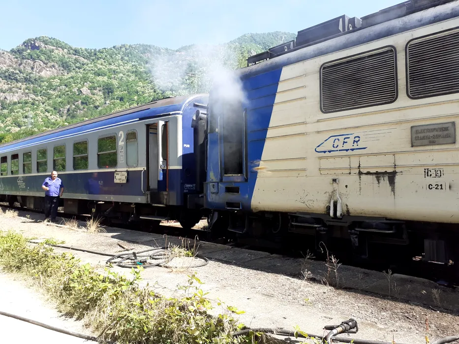 Trenurile groazei. Încă o locomotivă a luat foc în mers, pe ruta Sibiu – Râmnicu Vâlcea. În interiorul trenului se aflau 70 de pasageri | VIDEO
