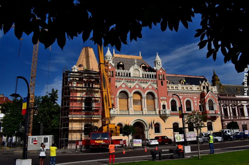 Turla din lemn pe Palatul Episcopal Greco-Catolic Oradea a fost montat după incendiul de acum un an