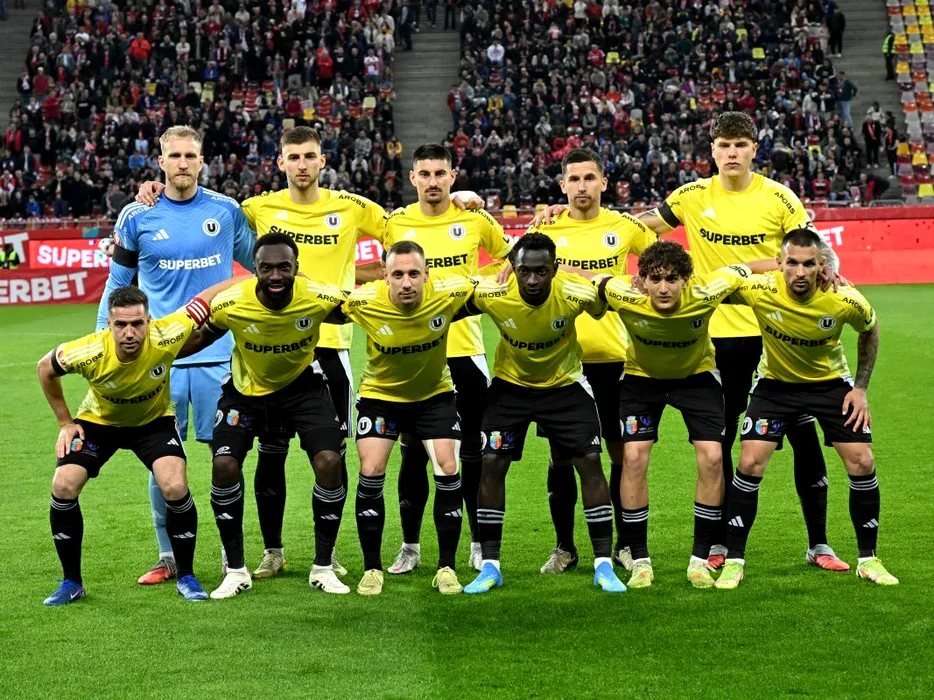 Fotbalistii clujeni la o fotografie de grup realizata inaintea meciului de fotbal dintre Dinamo Bucuresti si Universitatea Cluj, din cadrul Play off-ul Superligii Superbet, desfasurat pe Arena Nationala din Bucuresti, sambata 18 aprilie 2026. © FOTO:Razvan Pasarica/SPORT PICTURES