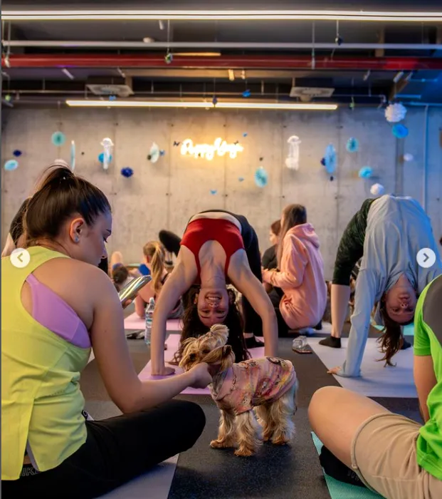 Ultima modă în materie de relaxare. Puppy yoga, TERAPIA care combină dragostea pentru animale cu yoga