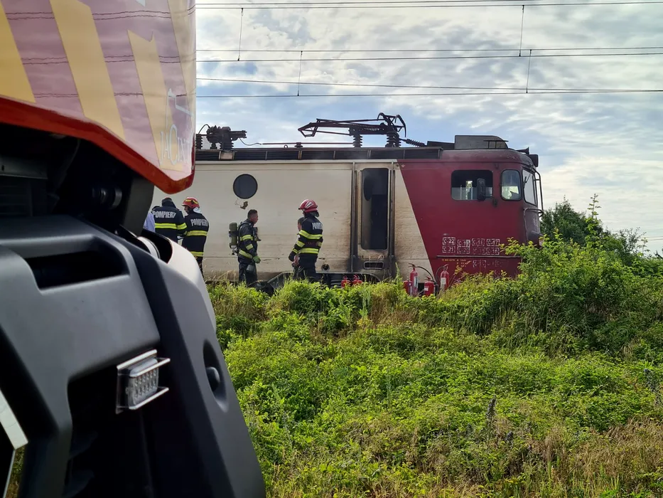 FOTO | Momente de panică, după ce locomotiva unui tren a luat foc. CFR anunță posibile întârzieri în circulația altor trenuri