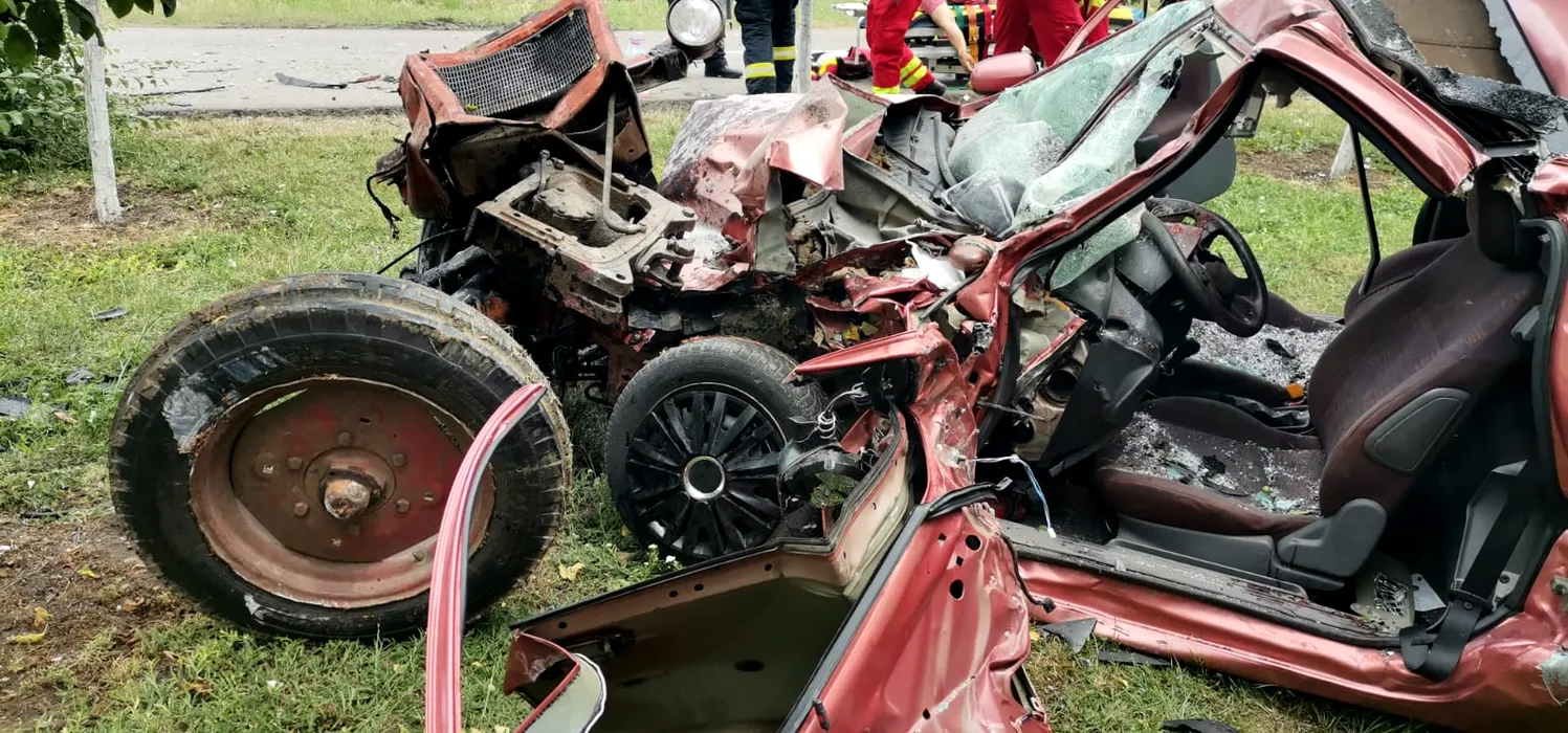 Un adolescent din Arad care conducea un tractor a lovit o mașină și a ucis două persoane | Imagini șocante de la fața locului