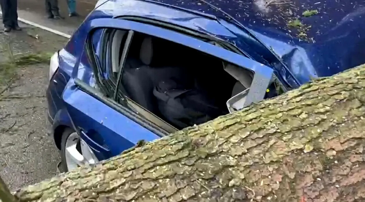 FOTO | Un arbore s-a PRĂBUȘIT peste o mașină, în județul Prahova. Două persoane au fost rănite