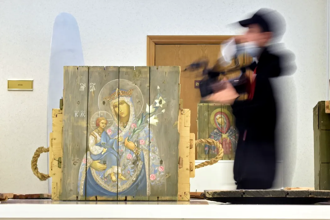 Un artist ucrainean pictează icoane pe cutiile de arme: „Vreau să transform moartea prin pictarea vieții” (FOTO)