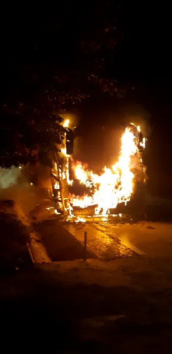 Un autobuz a luat foc în fața unei vopsitorii din Botoșani. Ce au descoperit pompierii, după ce au stins incendiul