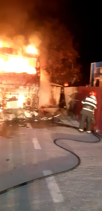 Un autobuz a luat foc în fața unei vopsitorii din Botoșani. Ce au descoperit pompierii, după ce au stins incendiul