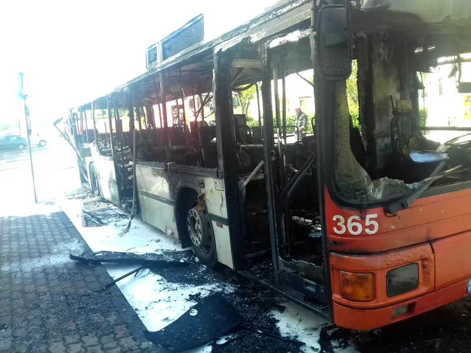 Un autobuz cu 15 călători a luat foc în mers, în Arad