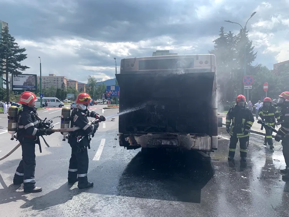 Un autobuz cu mai multe persoane la bord a luat foc la Brașov! FOTO & VIDEO