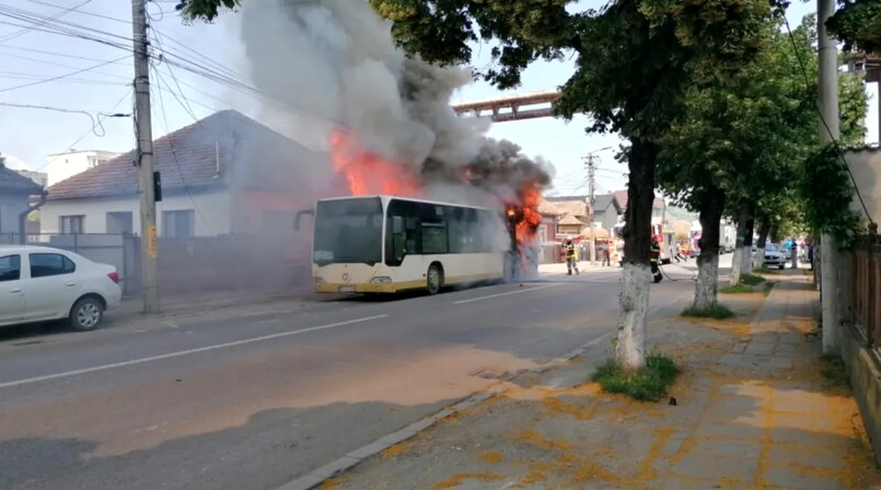 Un autobuz cu pasageri a luat foc în orașul Târnăveni, din județul Mureș (FOTO-VIDEO)