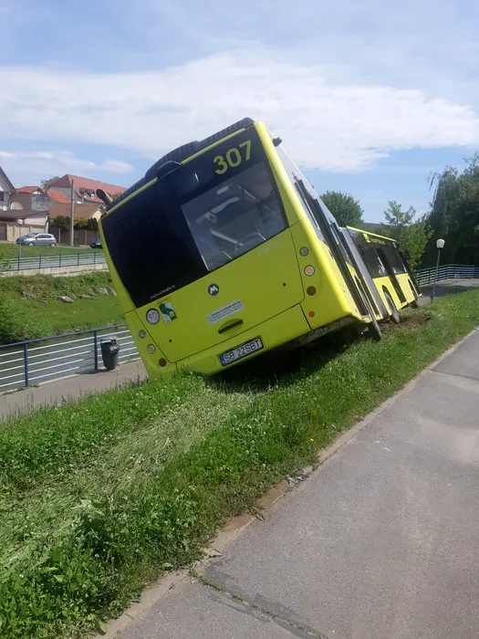 Un autobuz din Sibiu a fost la un pas să ajungă în râul Cibin, după ce șoferului i s-a făcut rău la volan (FOTO)