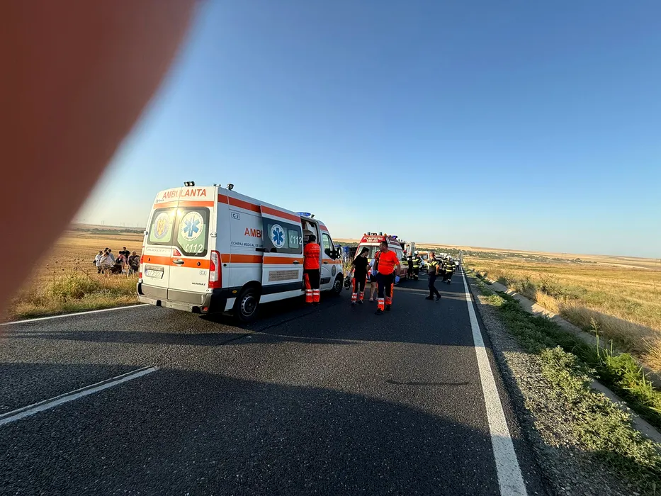 Un autocar cu 61 de ucraineni s-a RĂSTURNAT pe DN22. Două persoane au fost duse la spital