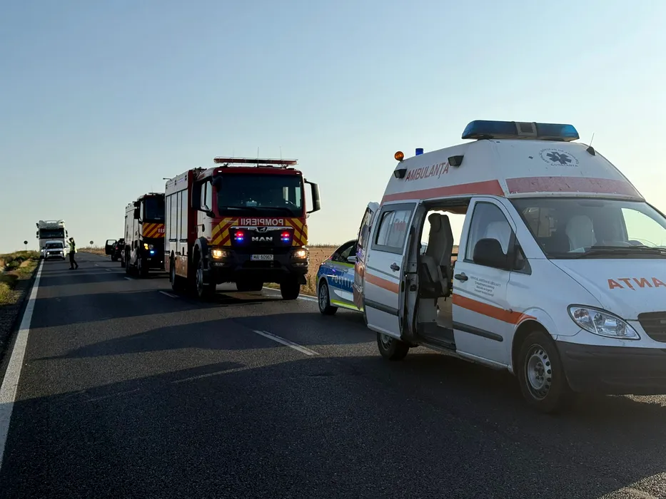 Un autocar cu 61 de ucraineni s-a RĂSTURNAT pe DN22. Două persoane au fost duse la spital