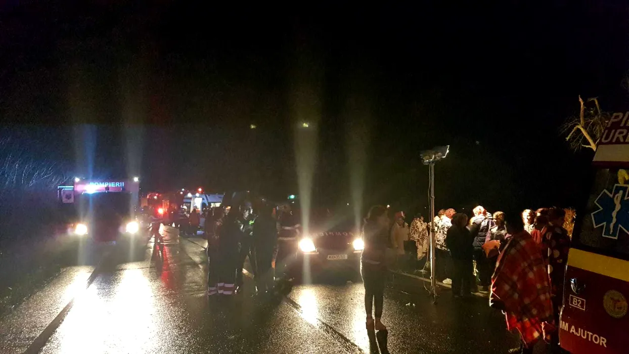 Un autocar cu 70 de pasageri S-A RĂSTURNAT în județul Hunedoara: 1 mort și 32 de răniți