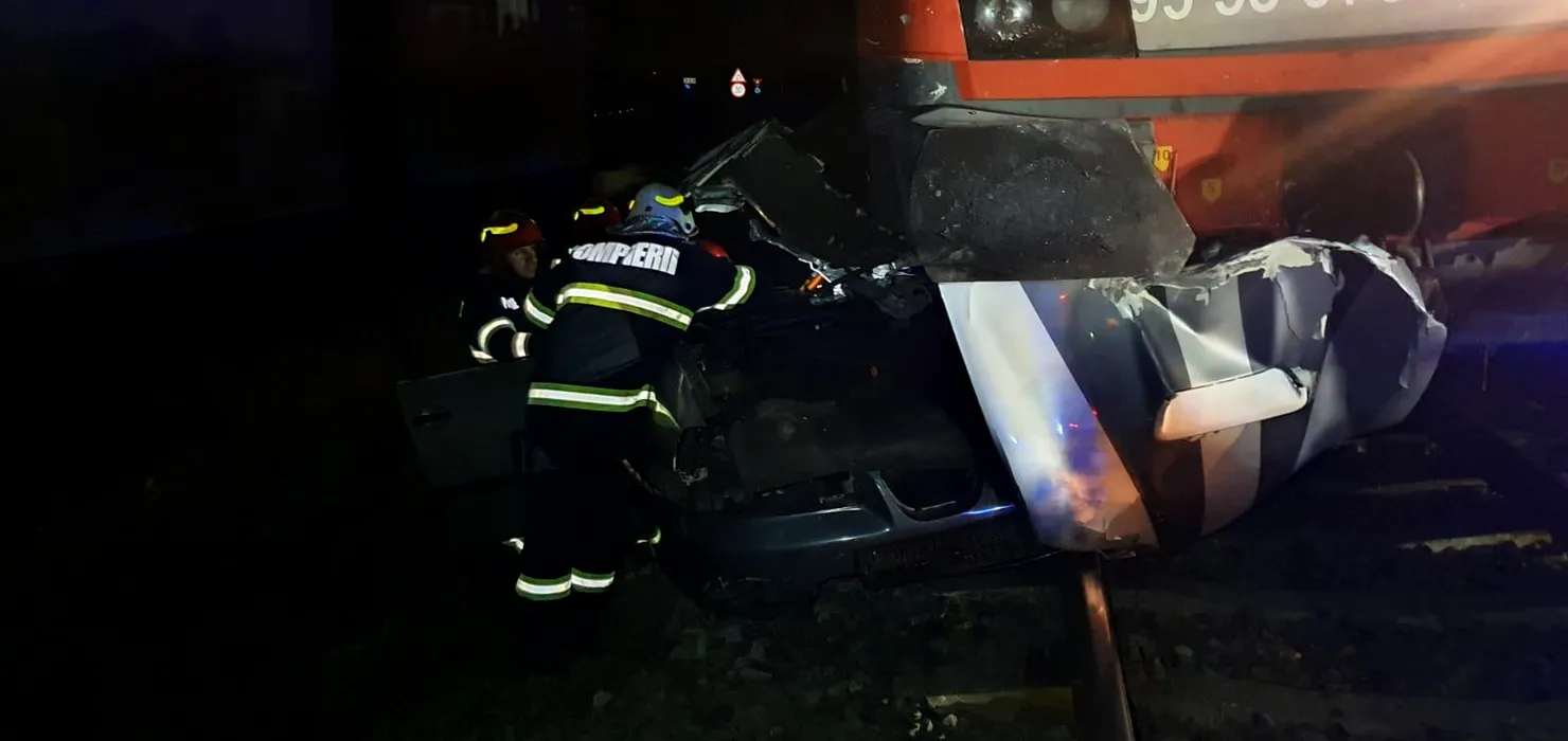 Un autoturism a fost lovit de tren în Satu Mare. Șoferul mașinii a murit