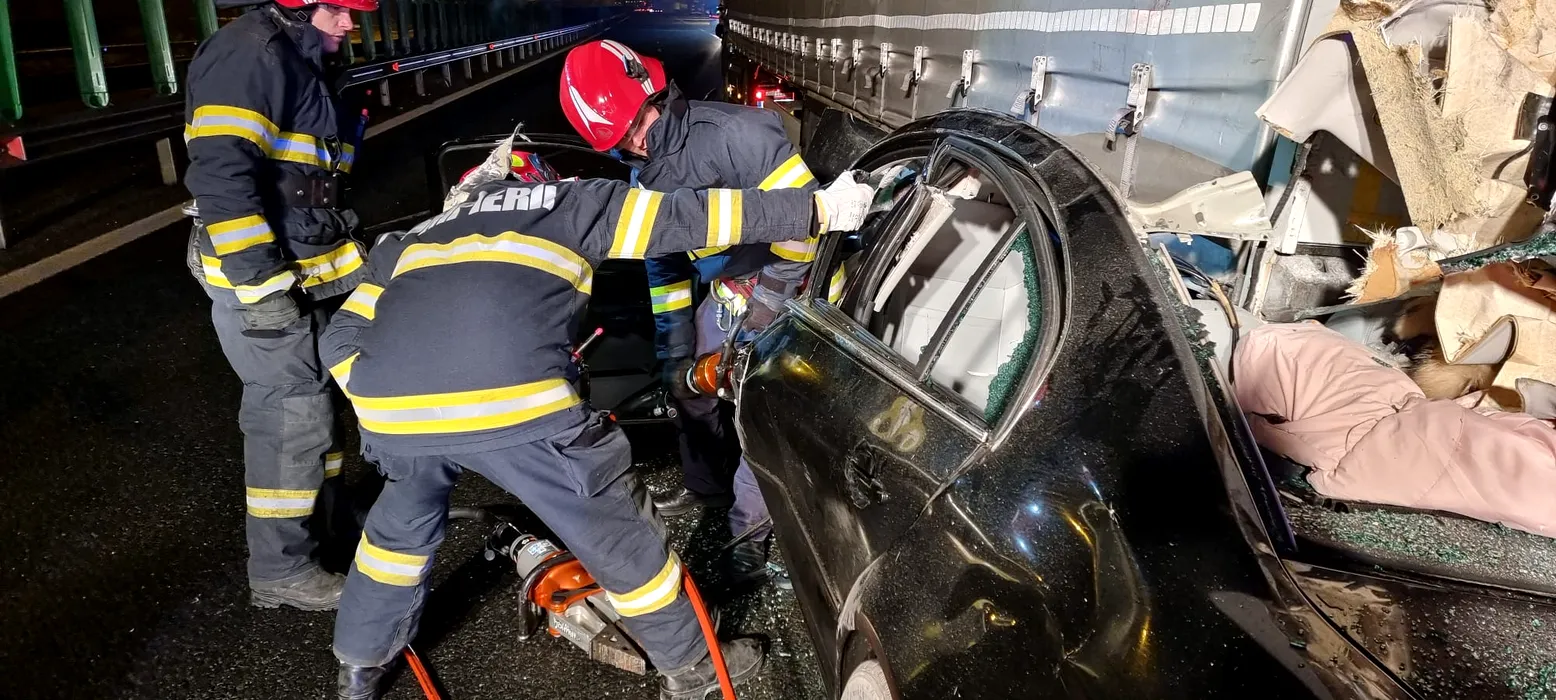 FOTO-VIDEO | Un autoturism a intrat sub un TIR, pe A1 la Vama Nădlac. Accidentul s-a soldat cu trei morți și un rănit