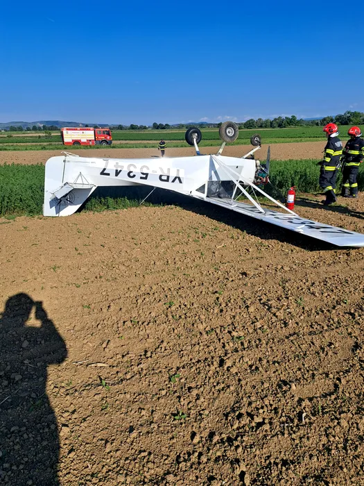 Un avion de mici dimensiuni a aterizat FORȚAT, pe un câmp din județul Alba, din cauza unor scurgeri de carburant. Care e starea pilotului