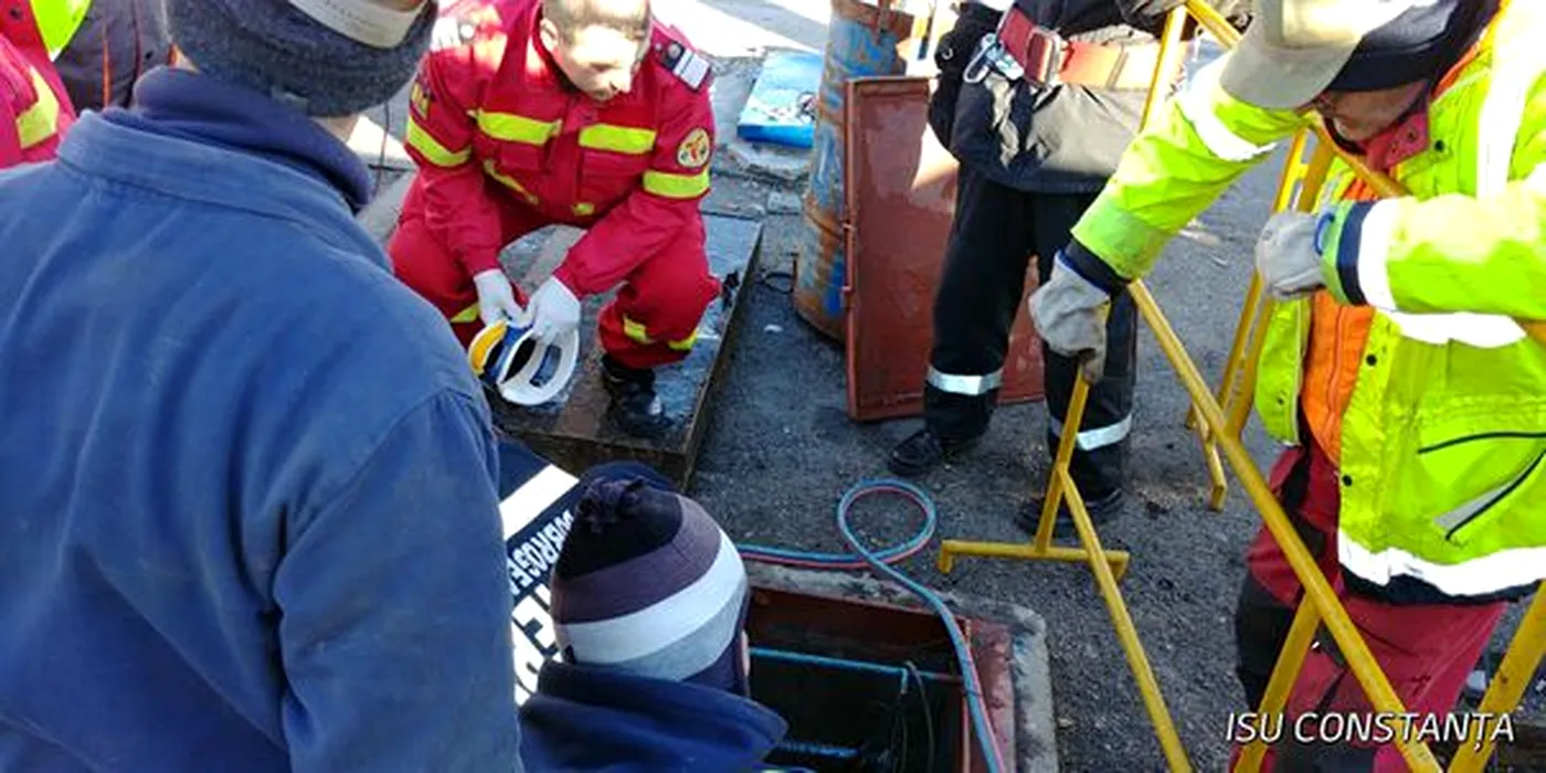 Un bărbat a fost salvat de pompieri la Constanța, după ce a căzut într-o gaură de canal