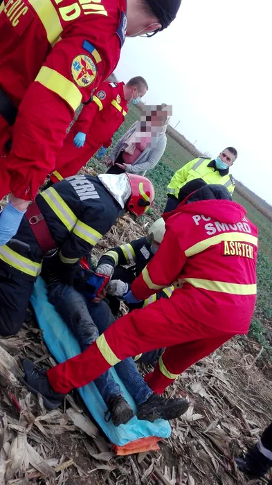 Un bărbat a rămas cu mâna prinsă într-un utilaj pe câmp! IMAGINI DRAMATICE de la fața locului!